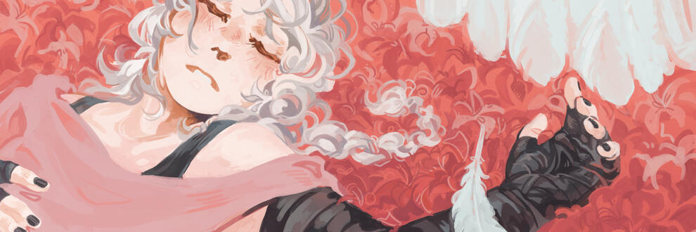 my name's Beau, AKA Fest or Festidae, & i'm a nonbinary artist and illustrator.i'm a recent college graduate with a BFA in studio art. i'm currently focused on writing a graphic novel titled Distress Signal, though i dabble in printmaking (mainly woodcuts) and making watercolor pencil paintings as well. my art and stories are highly inspired by my life as a queer and disabled person.in my free time i mostly draw, write, knit, listen to podcasts, watch streamers, and play video games.